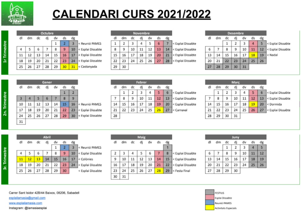 Començarem amb les activitats el dissabte 2 d’octubre a les 17 h. El mateix dissabte a les 17.15 h, tindrà lloc la reunió informativa per a les famílies.